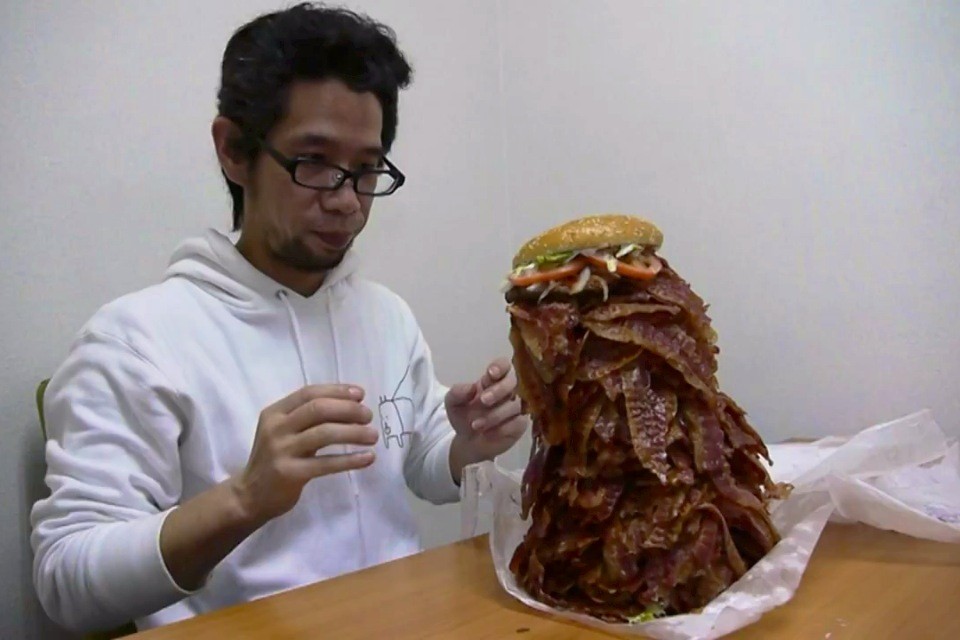 Man Orders a Whopper with 1,050 Pieces of Bacon; Attempts To Eat Itby Edwin GoeiPosted on April 24, 2012