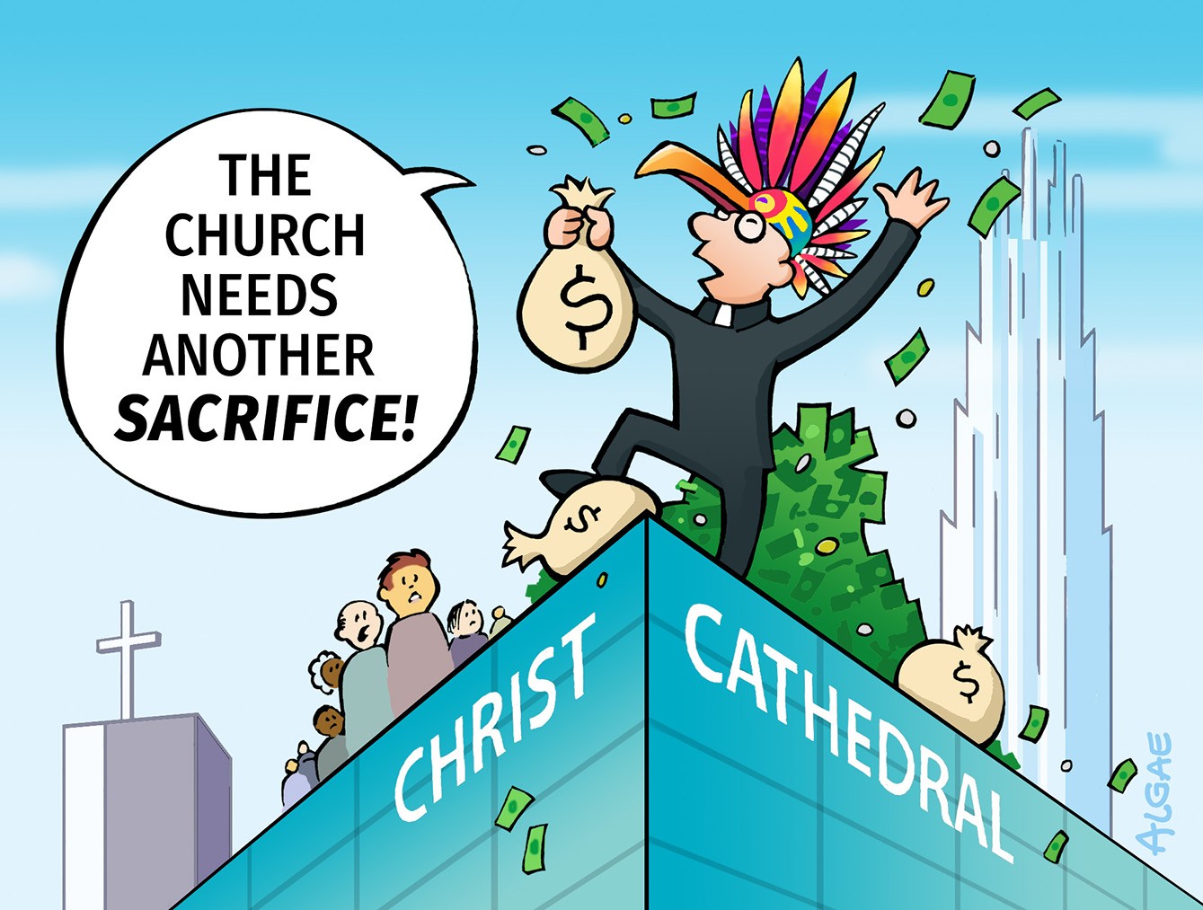 Christ Cathedral Needs Another Sacrifice from OC Catholics [OC Weekly Editorial Cartoon]by Gustavo ArellanoPosted on May 16, 2016