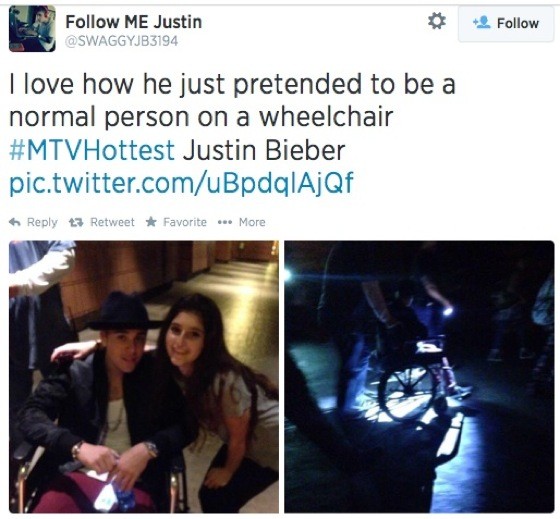 Justin Bieber Cruising Disneyland in a Wheelchair Draws Swift Biebot Defenseby Matt CokerPosted on July 23, 2014