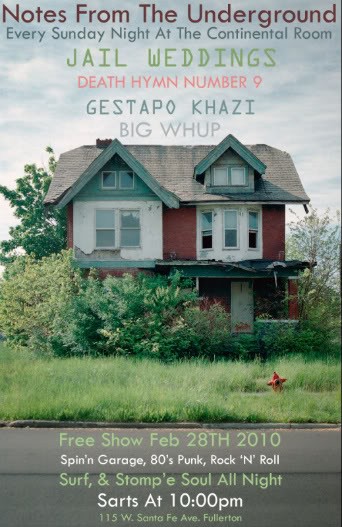 SUNDAY: Jail Weddings, Death Hymn Number 9, Gestapo Khazi and Big Whup at Continental Roomby Nate JacksonPosted on February 26, 2010