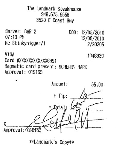 Case of the “McStinkyNigger” Orange County Restaurant Receipt Settlesby R. Scott MoxleyPosted on February 13, 2012