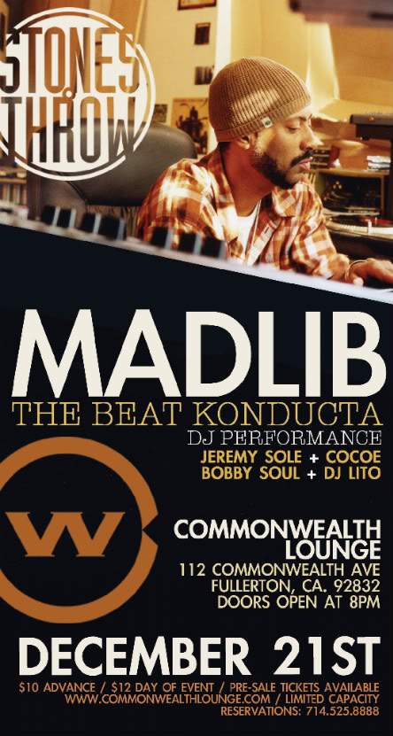 Monday: Madlib and Special Guests at Commonwealth Lounge, Fullerton Musicby Nate JacksonPosted on December 18, 2009
