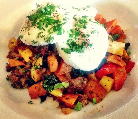 No. 78, Breakfast Sausage Hash at Thasos Greek Island Grille Food & Drinkby Anne Marie PanoringanPosted on July 9, 2013