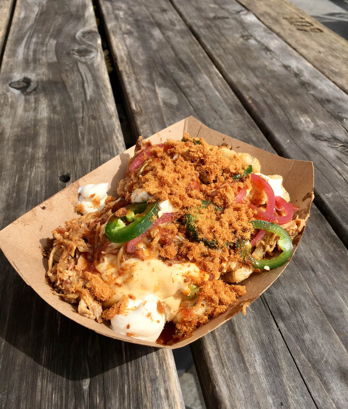 Foster’s CIA training did seem to come into play when it came to a dish he called “Hogchos,” a play on nachos with pork rinds instead of tortilla chips. A lesser chef attempting this monstrous Atkins pile-up of pulled pork, cheese sauce and Chinese-style pork floss would’ve ended up with an overly rich, sickening mess. But by adding sour cream, pickled onions, jalapeños and barbecue sauce, Foster turned it into something inexplicably light and addictive. Though the dish looked like Jabba the Hut, it moved like Baryshnikov.