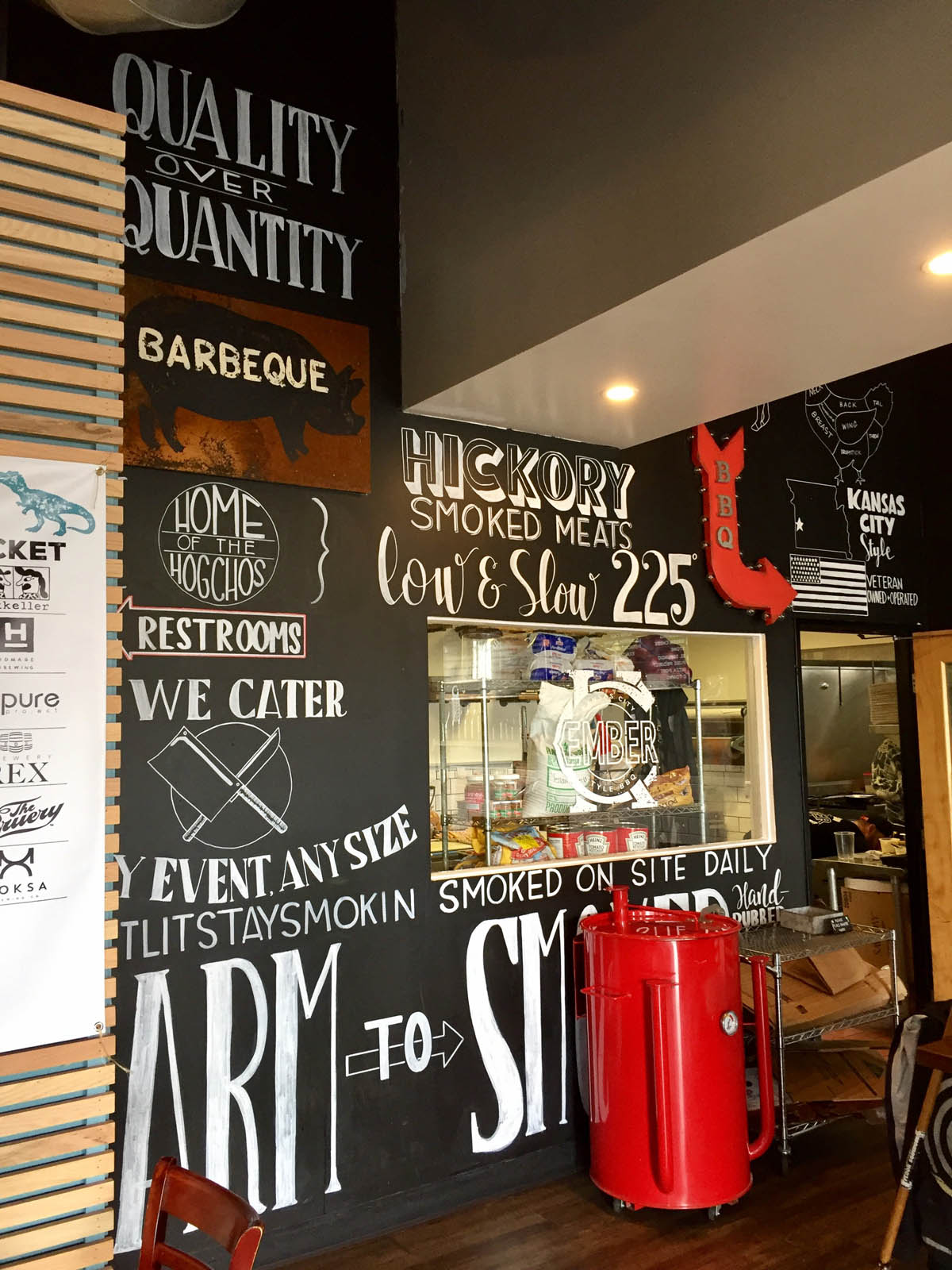 I thought about Lucille’s when I visited Ember BBQ in downtown Santa Ana; it felt like the complete opposite. First of all, it’s barely a restaurant. It calls itself a “pop-up,” sharing space with Native Son Alehouse; in this symbiotic relationship, the bar provides the beers and Ember the food.