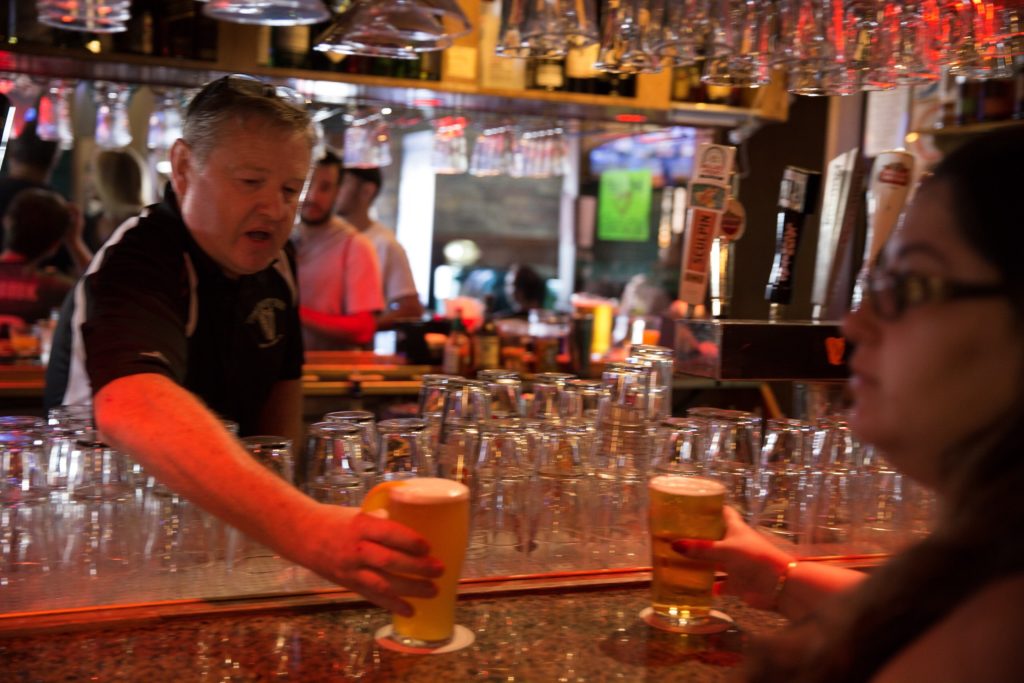 When the then-21-year-old came to the U.S. after Ireland’s economy ran flat in the ’80s, Lyons found a home away from home in the Harp. Shortly after taking over in 2002 for fellow Irishman Gerry Mackey, he removed the elevated dining area to make more room for a stage. (Not long ago, he upgraded the sound system with QSC Speakers and an Allen & Heath mixer board.) The Harp has become a staple for live music, with a recent shift toward booking what one could call “elevated or theatrical” bands, wherein the group take the business of being in a cover band more seriously than they take themselves, going balls to the wall on costuming and posturing.