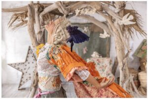 At the end of Glitter Saints, Brown sits at her kitchen table back in Bandera, Texas – a heart full of grief and only some kite string at hand. With this she sewed Magnolia Pearl’s first official item, and from there she’s built a burgeoning business from the art of her two home states.