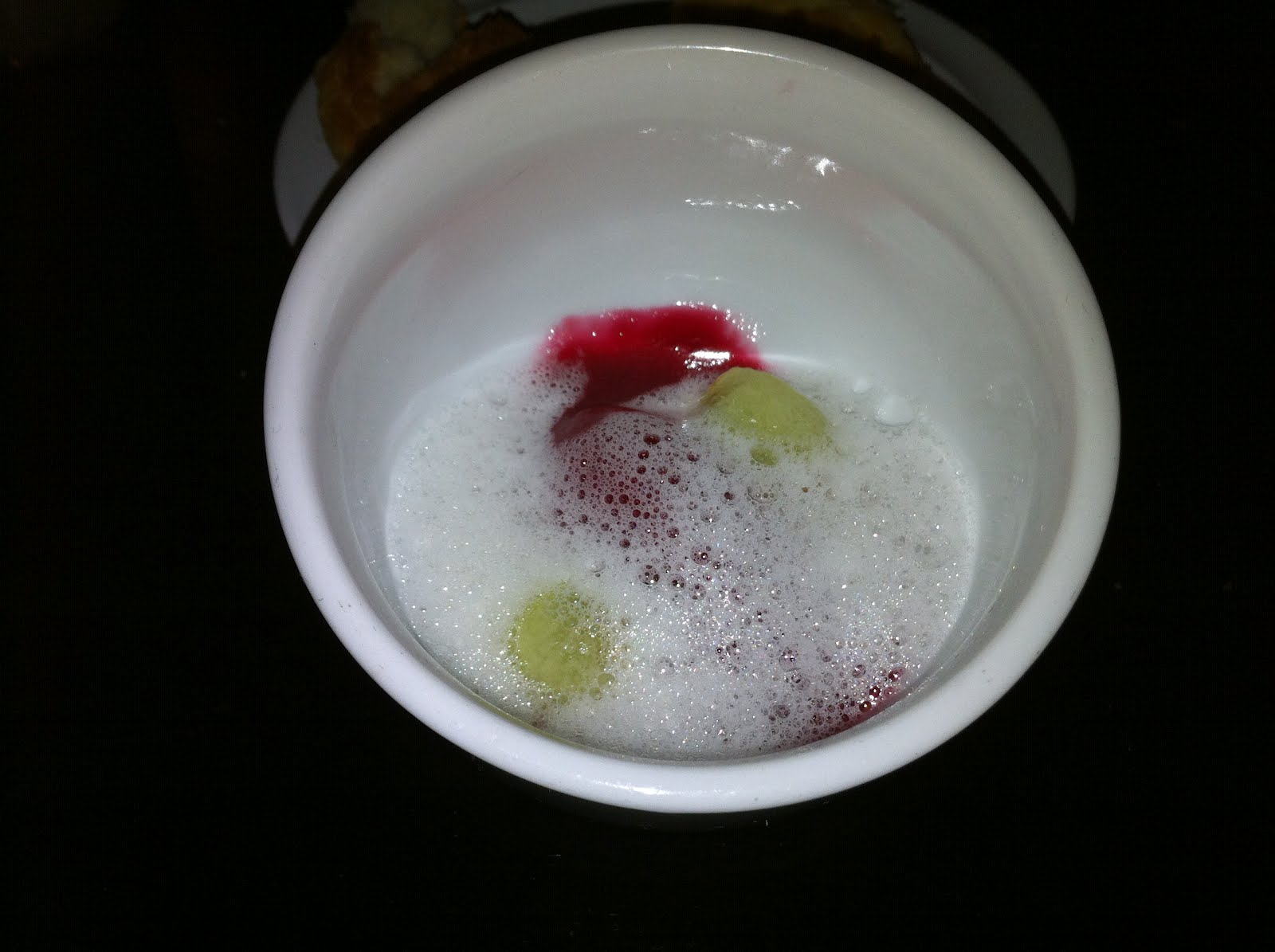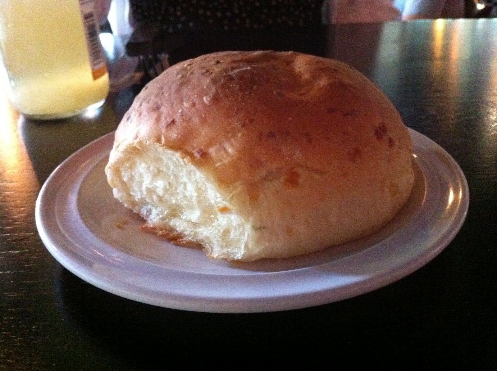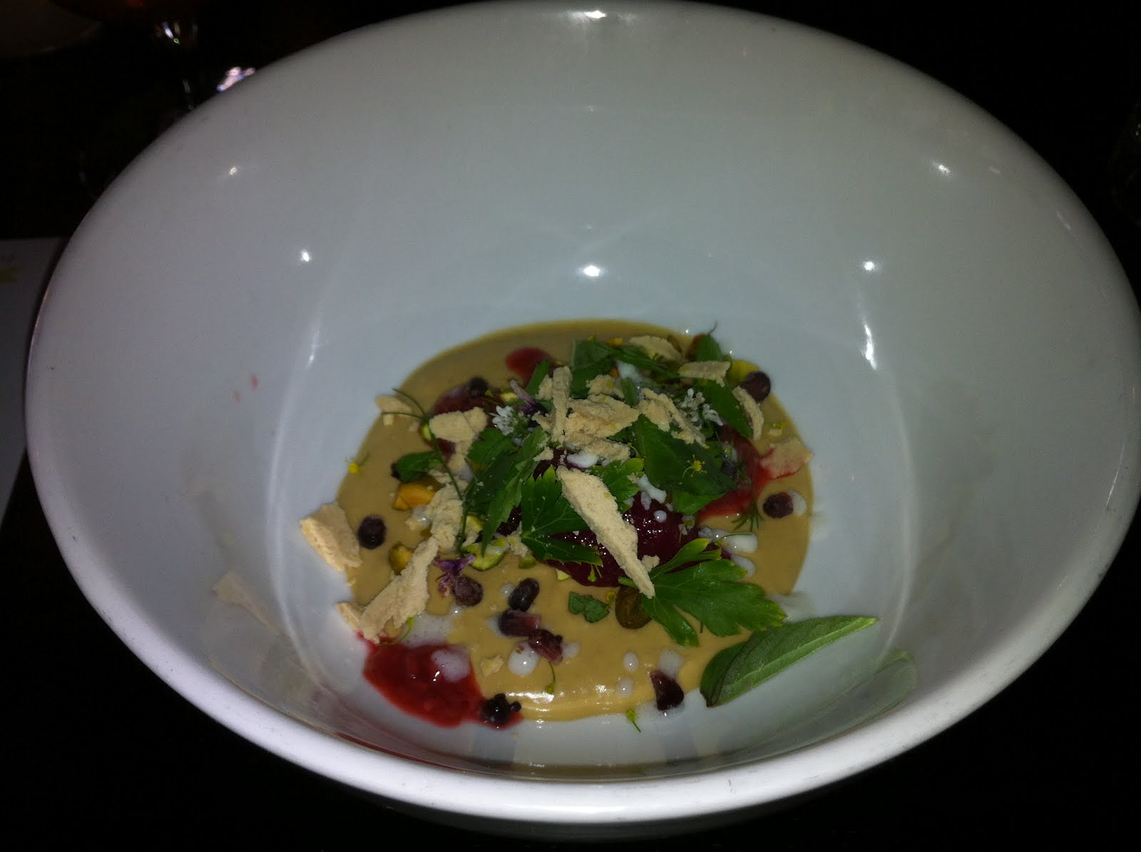 This morning, looking quite sated, he regaled me with stories of his feast. He was glad to do it, he said, but added that he probably wouldn't repeat it if The Playground did it again next week. He counted exactly 25 other willing participants in the restaurant last night. Judging from his blow-by-blow account, the best dish of the evening was the foie gras en pappiote, which was served with a cheesy mashed potato bread to sop up what was essentially melted foie-flavored butter.
