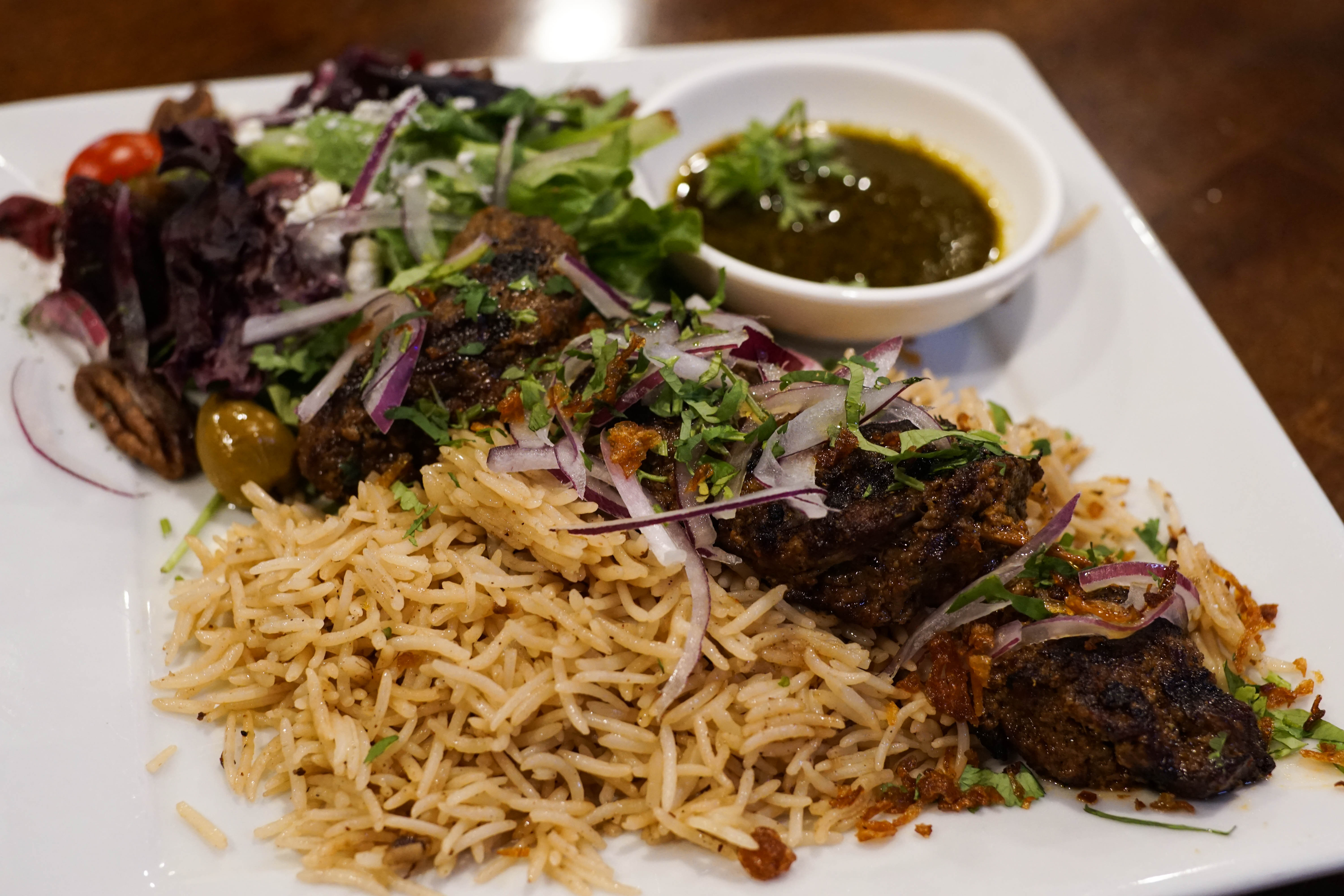 Among the main plates are beef seekh (ground beef skewers), spicy paneer kebab (grilled marinated paneer cheese) and shalimar lamb chops, slowly grilled lamb marinated in the perfect amount of yogurt. Spicewood’s beef boti is a succulent plate of spiced, marinated sirloin steak, fragrant rice and a side salad that puts most chef salads to shame. Mixed greens and arugula come intertwined with beet wedges, green olives, feta and cherry tomatoes, all served with a side of housemade basil chutney, lemon and olive oil dressing. Despite the toned-down spice and, sadly, lack of biryani on the menu (available online only), Spicewood’s “from the grill” plates serve up savory Pakistani delights.