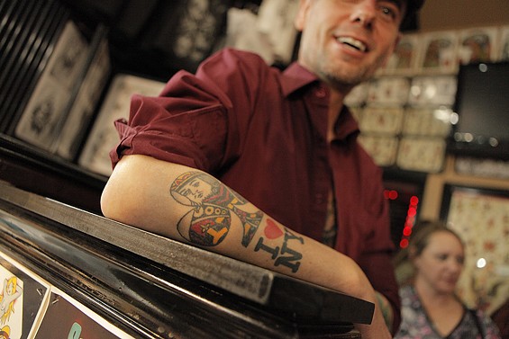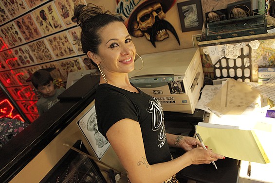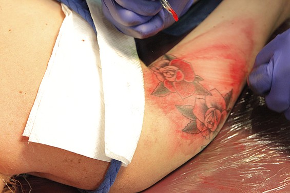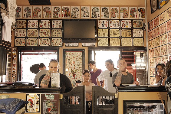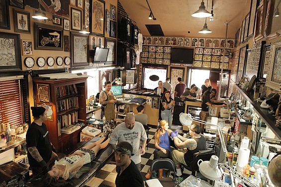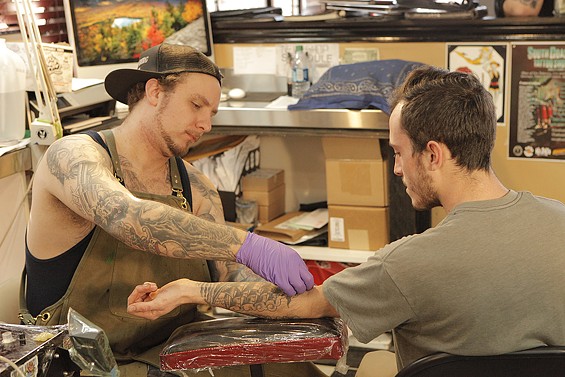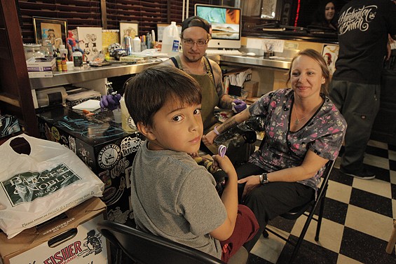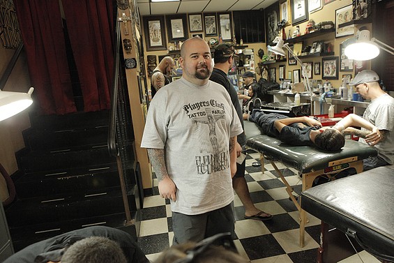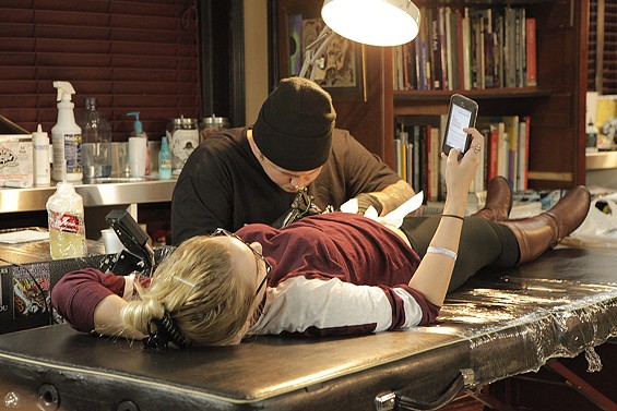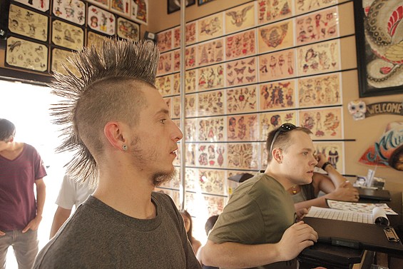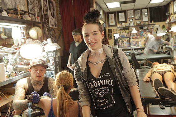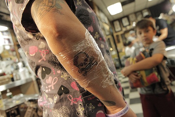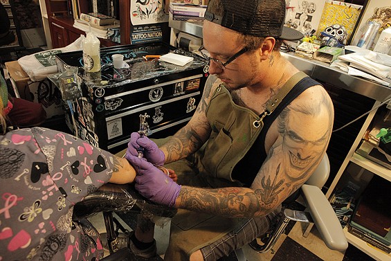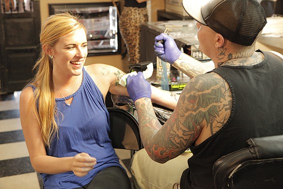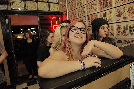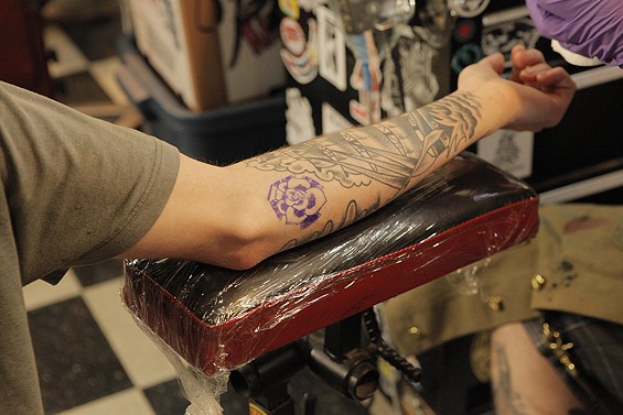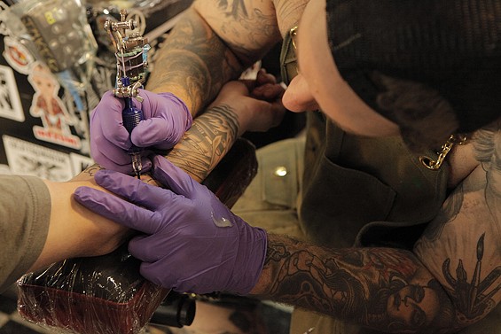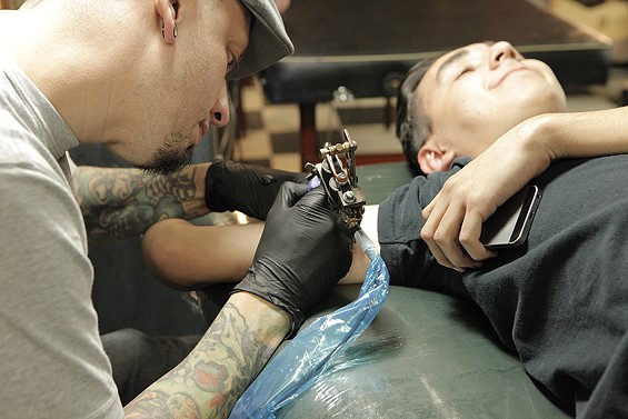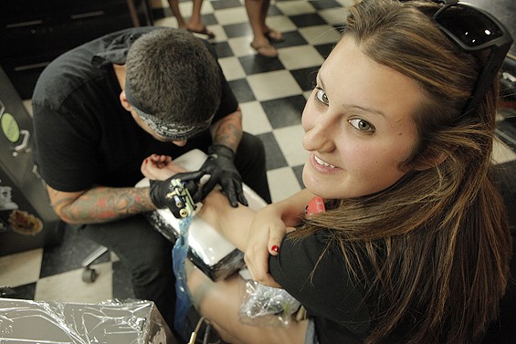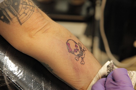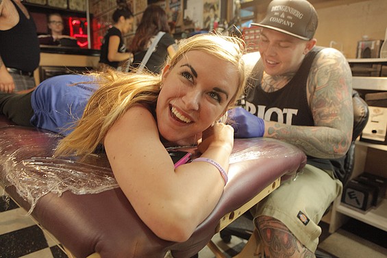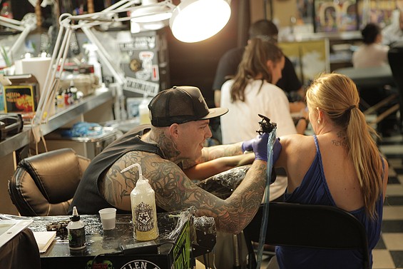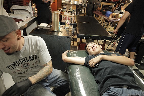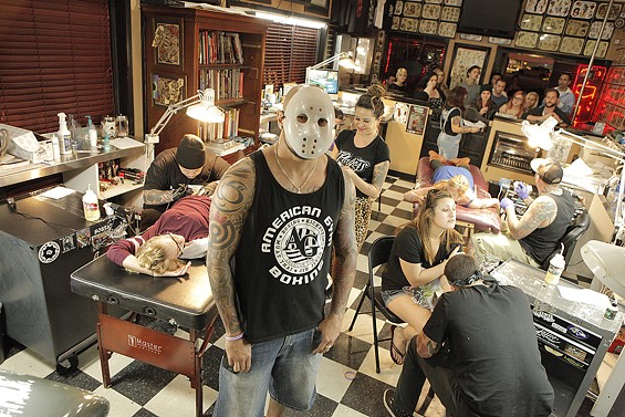 Players Club Tattoo Parlor in Huntington Beach had a Friday the 13th party and honored the tradition of tattoo shops offering $13 tattoos to lucky patrons on the unluckiest day. All images by John Gilhooley.